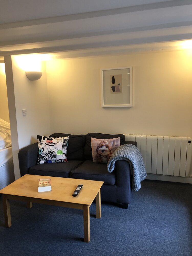 Communal area furniture; 2 seater sofa, coffee table, TV and washing machine